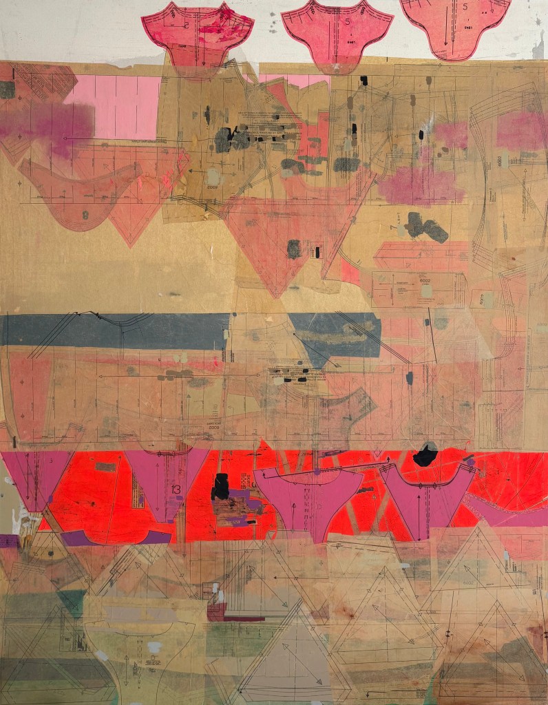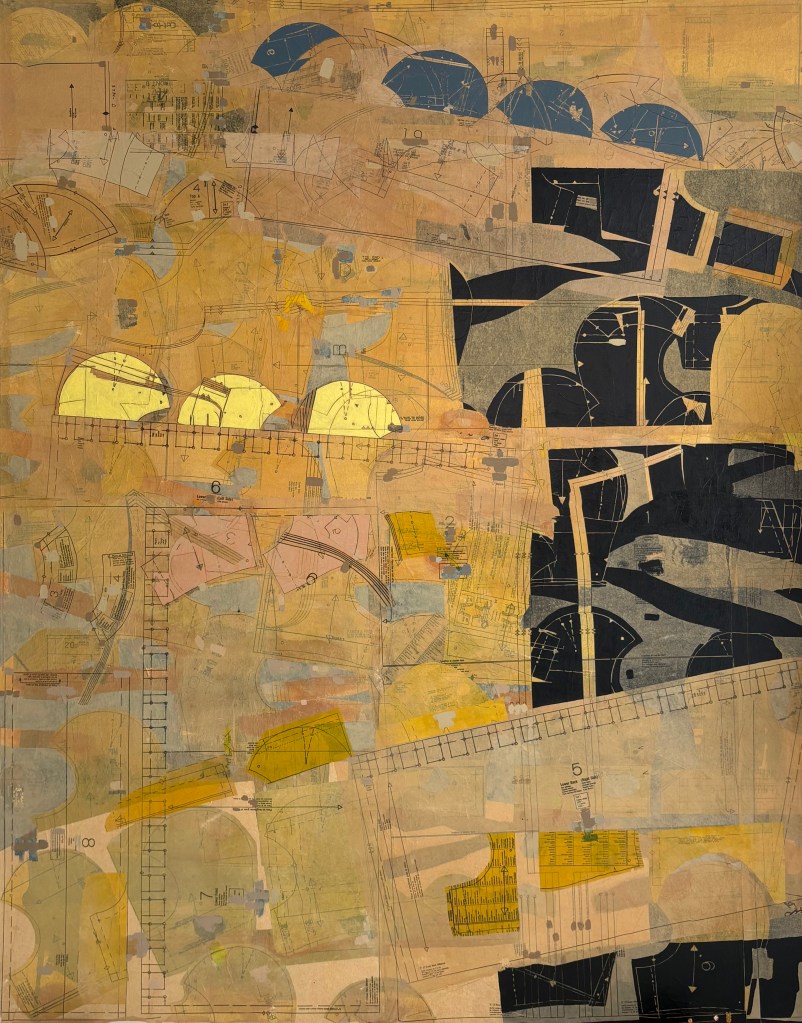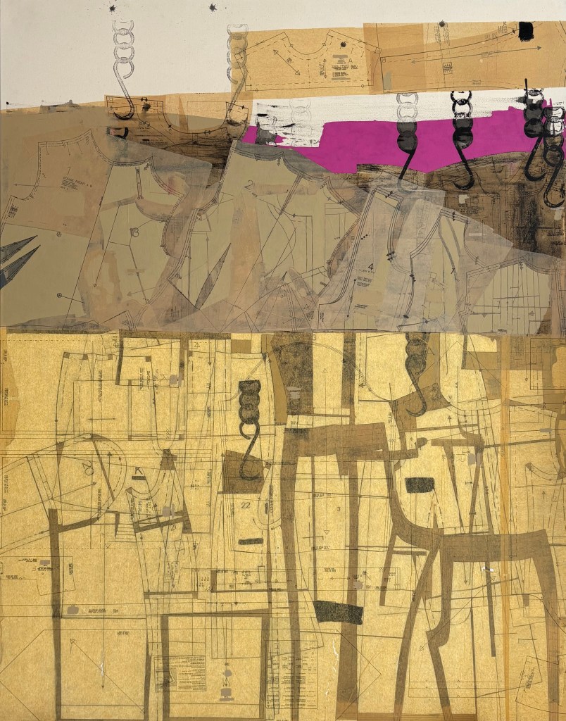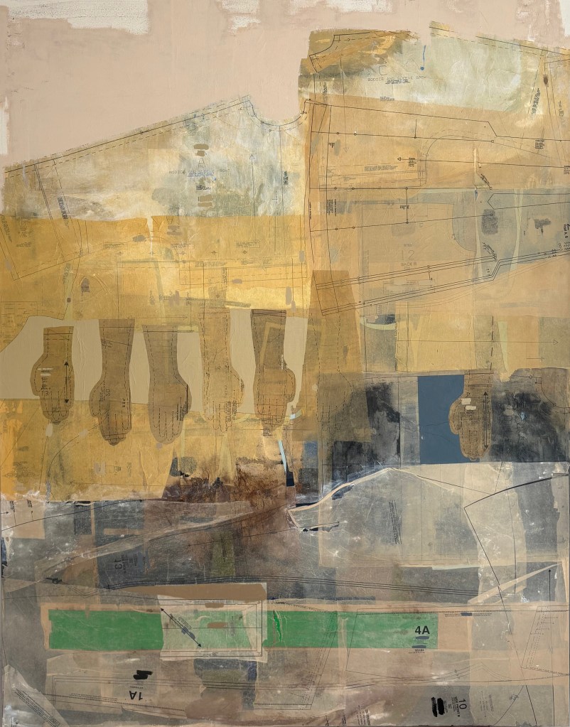 Antique tissue paper links the three sub-bodies of work. The paper was initially intended to be directions to sew clothing for men, women and children. The tissue paper now functions as the catalyst of all unit-humans, further systematizing the assembly line process. Garcia-Lee draws a visual corollary, based on texture, between the paper and the under-layers of human skin, a ubiquitous organ, ultimately relating HOMO SAPIEN SAPIEN to the entire human race.