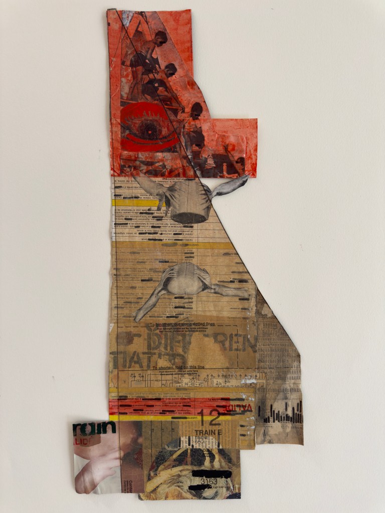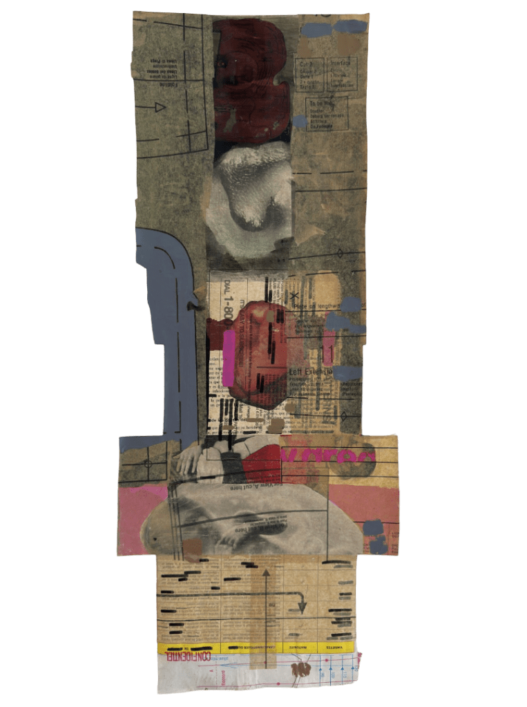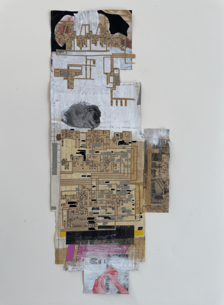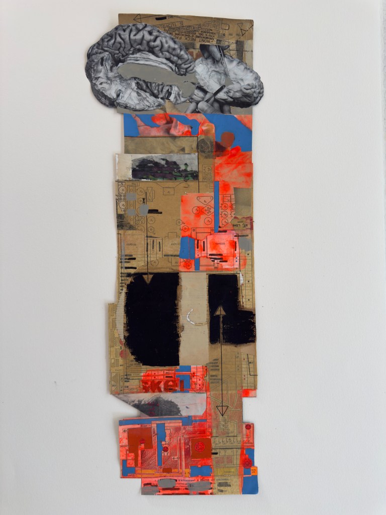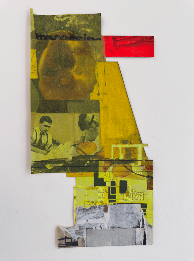 Two-dozen collages act as work orders for human body parts, the conglomeration of which is one unit-human. Although there are attributes of human anatomy made explicit in the collages, such as eyes, ears and hands, any unique traits are expurgated to reinforce the dissolution of the individual. intersystem signal transmission acts as directions for the assembly line to appropriately produce a single functional nervous system. The directions are intentionally illegible and all writing has been redacted for the production process to be standardized and objective.