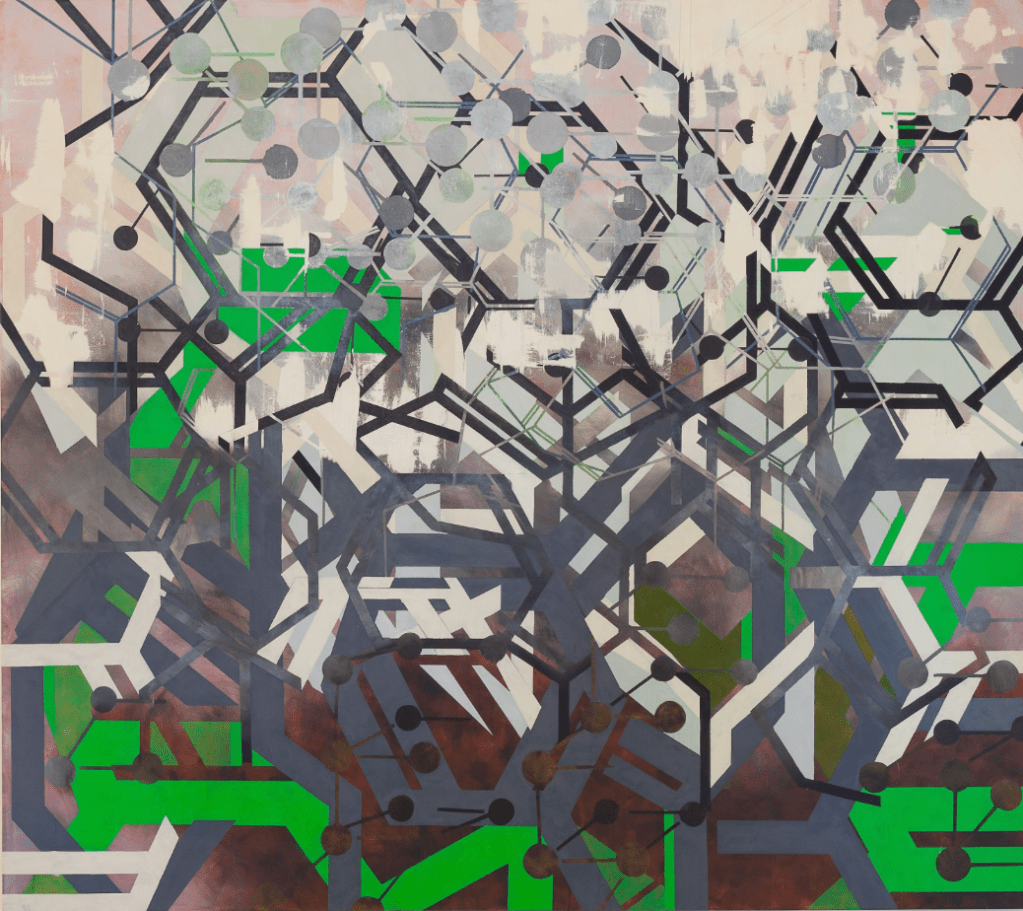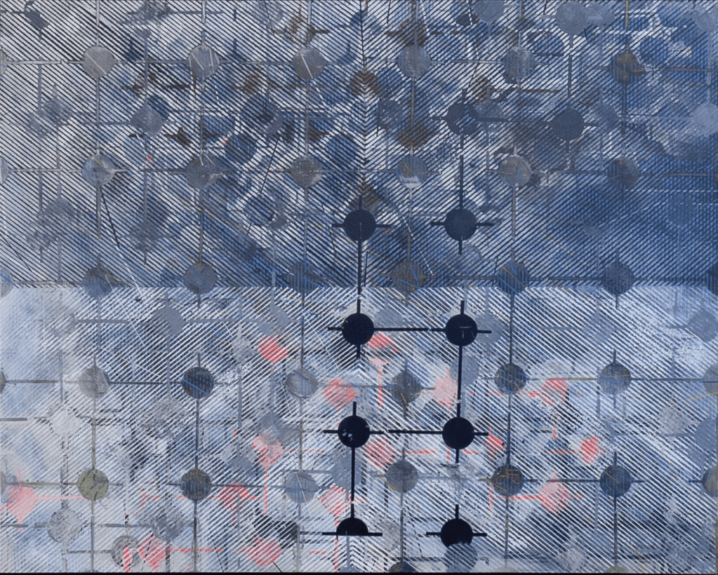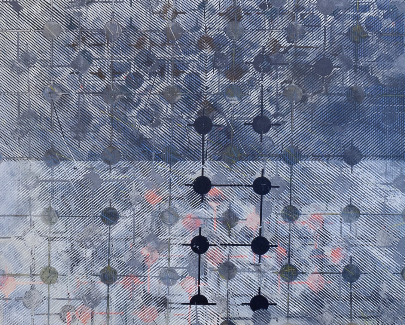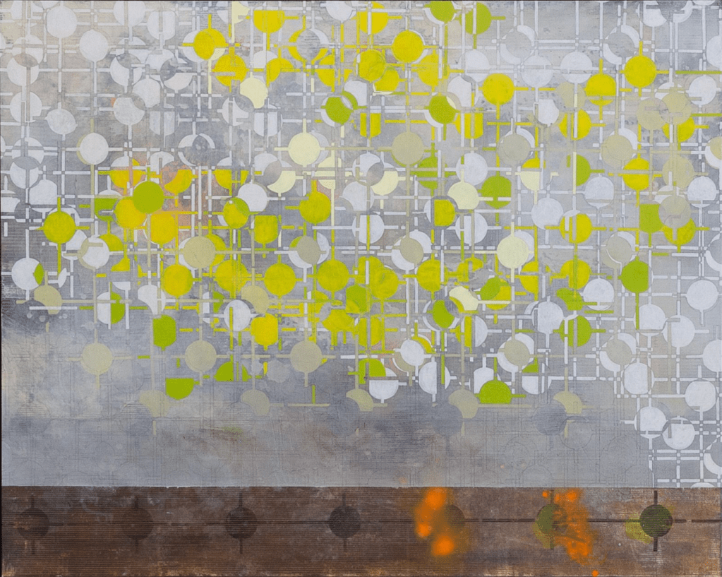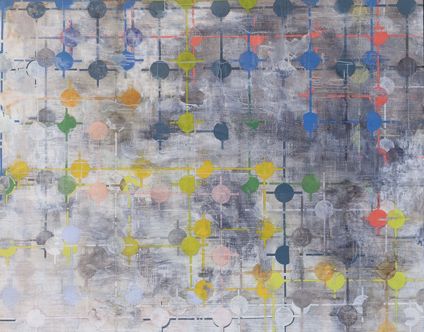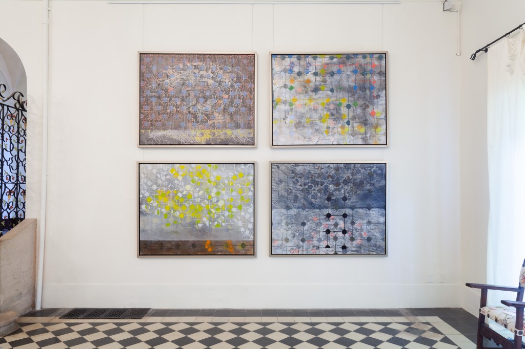 Garcia-Lee’s works resist being read as scientific illustrations and become catalysts for the process that our minds undergo in viewing the works. The Monkey Mind paintings locate themselves at the intersection of art and science. Through her atmospheric application of colors and gridded layering of geometric forms, Garcia-Lee’s paintings recall the depth of color field painting and demonstrate her command of the language of abstraction.