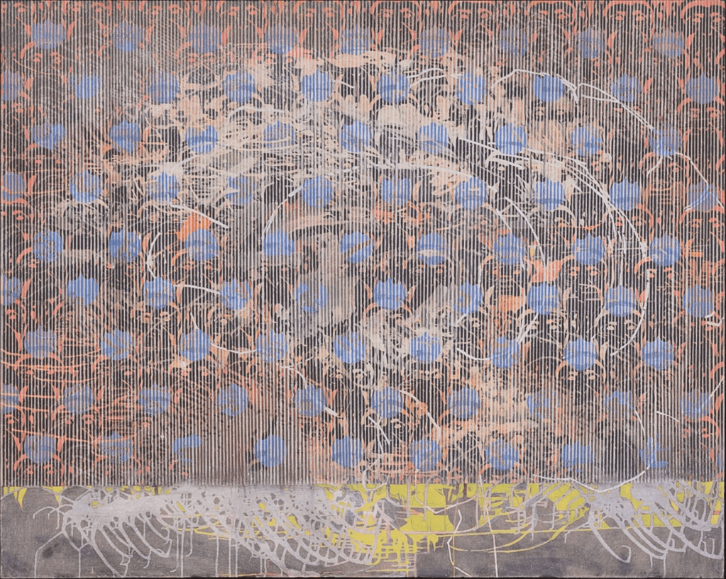 Monkey Mind is Natalia Garcia-Lee’s new suite of paintings, which are an extension of her study of human behavior. In Monkey Mind, Garcia-Lee set out to illustrate the framework of human experience from the perspective of neuroscience. Her process involves painstakingly and intricately applied layers of paint and interlacing patterns that trace the chemical processes of the brain that cause human beings to react, feel and exist in response to a world of stimuli. The notion of the “Monkey Mind” refers to the Buddhist concept of the restless state of the mind that is constantly in a reactive state. Each painting in the series illustrates a reaction or chemical process and can be understood within the interconnected frameworks of neurons and neurotransmitters that form the mind and cause behavior.
